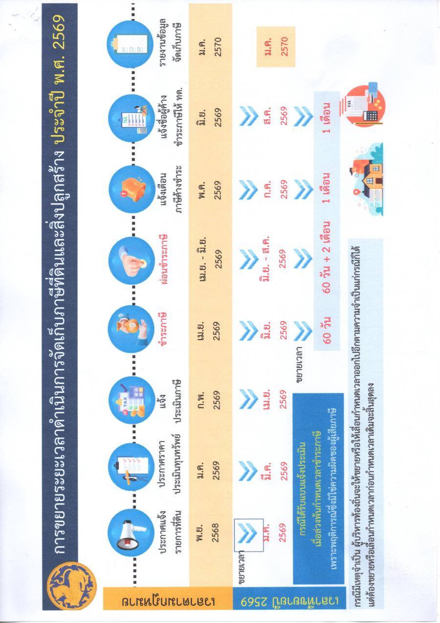 ขยายกำหนดเวลาดำเนินการตามพระราชบัญญัติภาษีที่ดิน และสิ่งปลูกสร้าง พ.ศ.2562 ประจำปี พ.ศ.2569