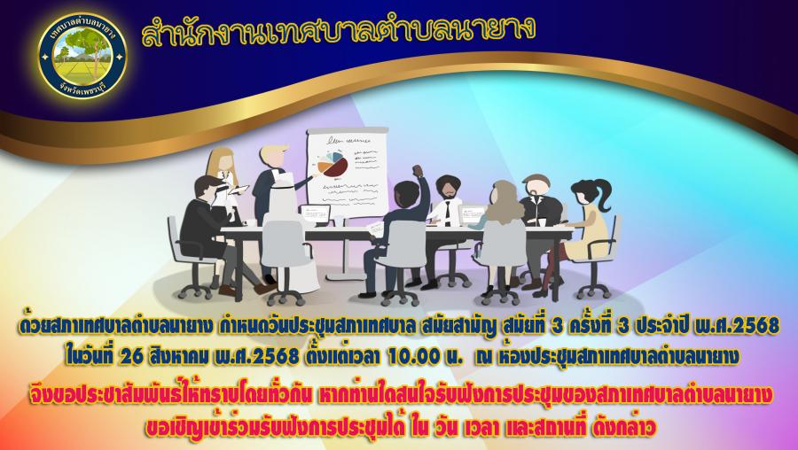 กำหนดประชุมสภาเทศบาลตำบลนายาง สมัยสามัญ สมัยที่ 3 ครั้งที่ 3 ประจำปี 2568