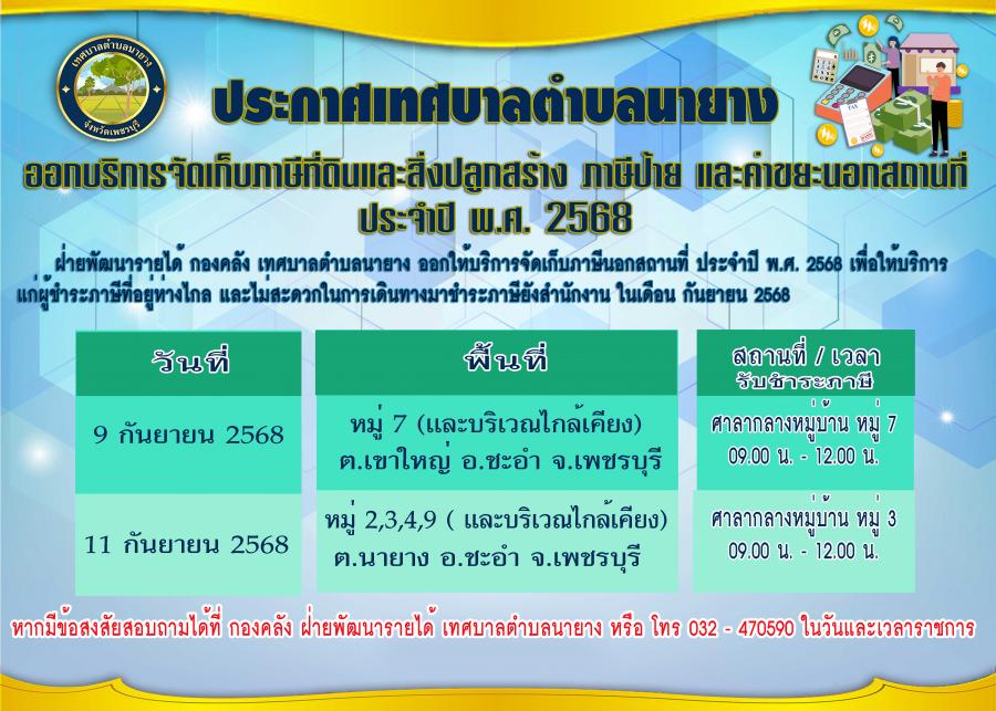 ออกให้บริการจัดเก็บภาษีนอกสถานที่ ประจำปี พ.ศ. 2568